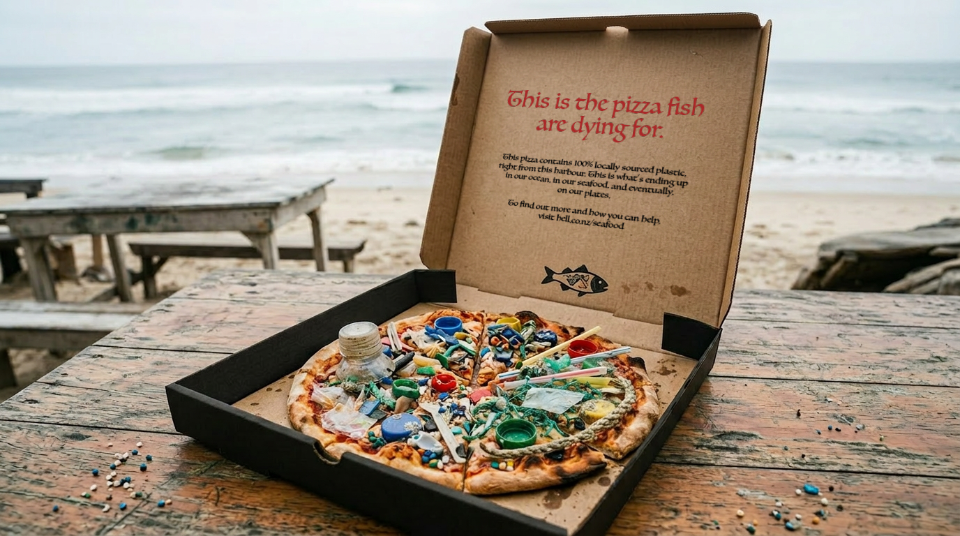 In this brief, the challenge was raising awareness of the volume of plastics to be found in our ocean. To amplify the message, we suggested a partnership with Hell Pizza, known for their provocative tone, to release a one of a kind pizza - the Catch of the Day, with ‘ingredients’ 100 locally sourced from nearby harbours. Copy on the lid would direct people online for more information and to receive a voucher for a free pizza - with something a little more edible.
